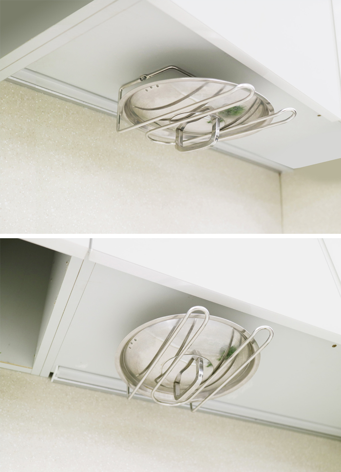 요리진행 상태를 보거나 뚜껑을 열어야할 경우 보통은 뚜껑을 상판위에 올려 놓습니다. 이런 방법들은 비위생적일 뿐아니라 시각적으로도 좋지 않습니다. 이런경우 커버랙을 이용해 쉽고 위생적으로 거치할 수 있습니다. 요리를 하지 않는 평상시에는 행주나 고무장갑 등을 걸어놓을 수 있습니다. 가격대비 실용성을 극대화 시킨 제품입니다.