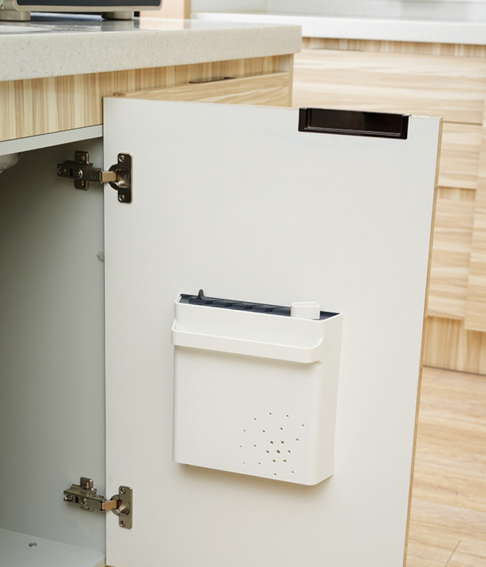도어 내측에 부착되어 주방용 칼들을 보관할 수 있으며 상단의 잠금 기능을 활용하여 안전상의 발생할 수 있는 문제를 미연에 방지하고자 하였습니다. 또한 칼의 수납이외에도 칼갈이와 전면의 손잡이를 활용한 행주걸이는 실용성과 편리성을 높였습니다.